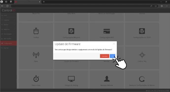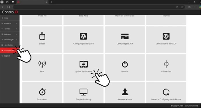 - CONFIGURAÇÕES > UPDATE DE FIRMWARE.