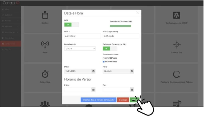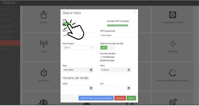 - Ative o campo NTP e clique em Salvar.