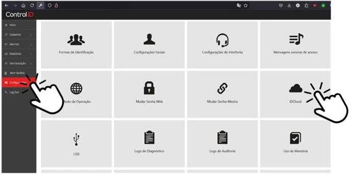 - No menu, vá em Configurações > iDCloud.